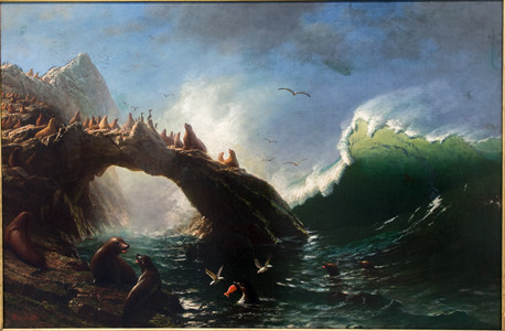 Bierstadt was born in Prussia, but his family moved to the United States when he was one year old. He returned to study painting for several years in Düsseldorf. He became part of the second generation of the Hudson River School in New York, an informal group of like-minded painters who started painting along the Hudson River. Their style was based on carefully detailed paintings with romantic, almost glowing lighting, sometimes called luminism. Bierstadt was an important interpreter of the western landscape, and he is also grouped with the Rocky Mountain School.