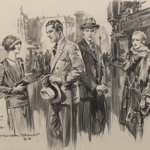 He was later hired as an illustrator by the Saturday Evening Post, where his works were featured prominently. Brown's works included illustrated stories of American authors such as F. Scott Fitzgerald, Irvin Cobb, and Sinclair Lewis. He also illustrated posters for the World War I war effort as well as book cover illustrations.