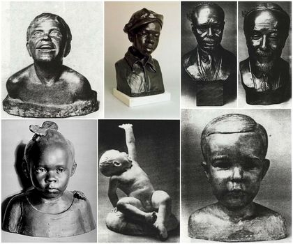 Augusta began making figures as a child, mostly small animals out of the natural red clay of her hometown, Green Cove Springs, Florida. Her father was a poor Methodist minister who strongly opposed his daughter's early interest in art. "My father licked me four or five times a week,” Savage once recalled, “and almost whipped all the art out of me.” This was because at that time, he believed her sculpture to be a sinful practice, based upon his interpretation of the "graven images" portion of the Bible. In 1907 Augusta Fells married John T. Moore. Her only child, Irene Connie Moore, was born the following year. John died shortly thereafter.