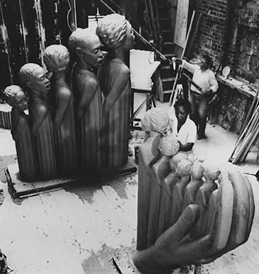 Her school evolved into the Harlem Community Art Center; 1500 people of all ages and abilities participated in her workshops, learning from her multi-cultural staff, and showing work around New York City. Funds from the Works Progress Administration helped, but old struggles of discrimination were revived between Savage and WPA officials who objected to her having a leadership role.