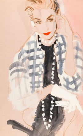 Stonehouse moved to New York with his friend Major Haller in 1946 and continued his career as a fashion artist. Crossing the Atlantic, Stonehouse aimed to become a portraitist and Haller’s social connections gave him an immediate entrée into New York society. He was attracted to the style of wealthy women who came to sit for their portraits. In addition to capturing their faces he drew their elegant clothes and jewellery.