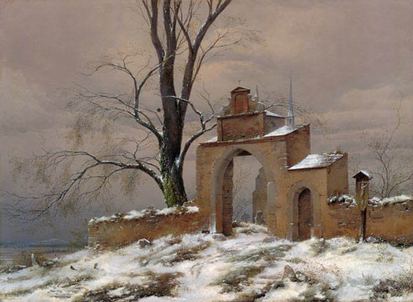 He was one of the first artists to portray winter landscapes in which the land is rendered as stark and dead. Friedrich's winter scenes are solemn and still—according to the art historian Hermann Beenken, Friedrich painted winter scenes in which "no man has yet set his foot. The theme of nearly all the older winter pictures had been less winter itself than life in winter. In the 16th and 17th centuries, it was thought impossible to leave out such motifs as the crowd of skaters, the wanderer... It was Friedrich who first felt the wholly detached and distinctive features of a natural life. Instead of many tones, he sought the one; and so, in his landscape, he subordinated the composite chord into one single basic note".
