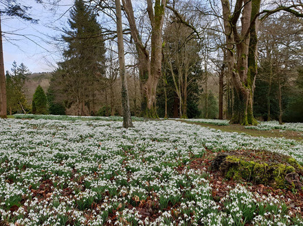 Every year during snowdrop season the gardens open to the public every weekend and I can say without a doubt that it is one of the most wonderful experiences, little white bells as far as the eye can see, and as if they weren't magical enough, there is also a lake where the waters are a luminous blue. If you can, it is very worth traveling to see, I believe an endless vista of snowdrops is worth every mile. To find out how and when to visit you can follow the link here to their website.