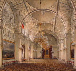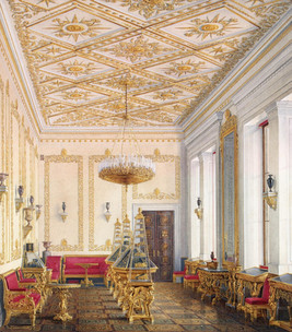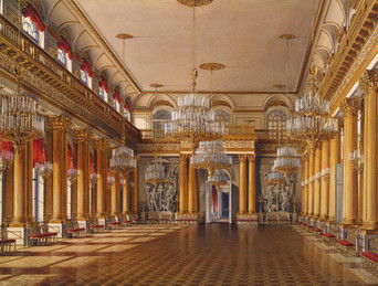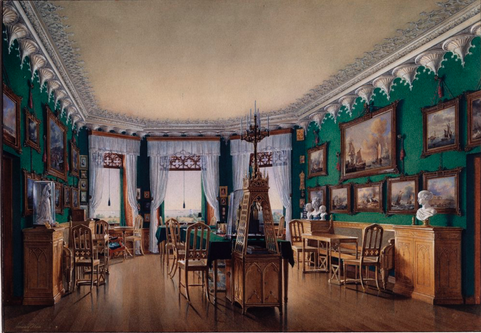 The Gatchina Palace was burned by German troops during World War II. When it was rebuilt, the interior was restored using Hau's paintings as a guide.