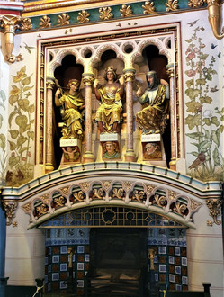 In 1865, the Marquess met William Burges and the two embarked on a great architectural partnership. Bute's desires and money allied with Burges' fantastical imagination and skill led to the creation of two of the finest examples of the late Victorian era Gothic Revival, Cardiff Castle and Castell Coch.