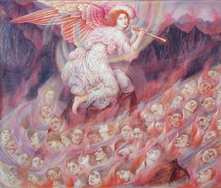 From the moment that de Morgan encountered spiritualism, her perspective seemed to change, and her works started to reflect more ideas about darkness and death. De Morgan used a range of motifs to represent spiritual ideas. A few examples are Renaissance angels, heavenly auras, a distinctive contrast between light and dark, and the symbolic use of colours. De Morgan used complex allegories to depict her social commentary and spiritual beliefs. The iconography in these works reflect several spiritual themes such as the progress of the spirit, the materialism of life on earth, and the imprisonment of the soul in the earthly body.