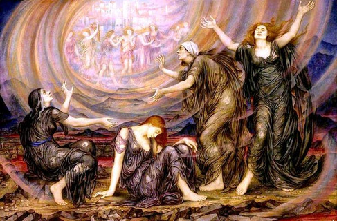 The vast majority of De Morgan’s works, particularly from the mid-1880s onwards, depict content or themes that can be described as broadly spiritualist. These themes arguably reach their peak in her later works like Daughters of the Mist (c. 1905–10), which use a Symbolist allegorical register to suggest their profoundly mystical content by suggestion rather than explicit declaration.