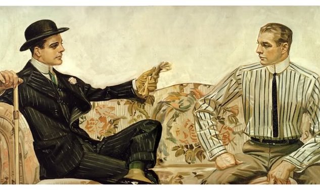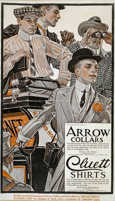 "...The Arrow Collar Man developed a singular identity, equal parts jock and dandy, who supposedly received more fan letters than silent film heartthrob Rudolph Valentino. To top things off, Leyendecker’s men were often modelled after his lover and lifetime companion, Charles Beach, making their secret romance a front-page feature across the U.S."