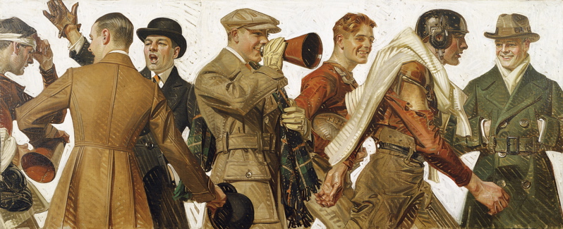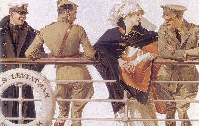 In 1914, the Leyendeckers, accompanied by Charles Beach, moved into a large home and art studio in New Rochelle, New York, where J.C would reside for the remainder of his life. During the first World War, in addition to his many commissions for magazine covers and men's fashion advertisements, J. C. also painted recruitment posters for the United States military and the war effort.