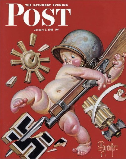 Leyendecker's last cover for the Saturday Evening Post was of a New Year Baby for January 2, 1943, thus ending the artist's most lucrative and celebrated string of commissions. New commissions continued to filter in, but slowly. Among the most prominent were posters for the United States Department of War, in which Leyendecker depicted commanding officers of the armed forces encouraging the purchases of bonds to support the nation's efforts in World War II.