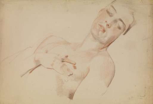 Around 1930, Somov met Boris Mikhailovich Snejkovsky: "...the twenty-year old young man who would inspire several of Somov's best later works. He would sit for straightforward portrait drawings, beautiful, mildly suggestive oil paintings, and he may have been the model for more erotic watercolours. The exact nature of his relationship with his model and friend is unknown."