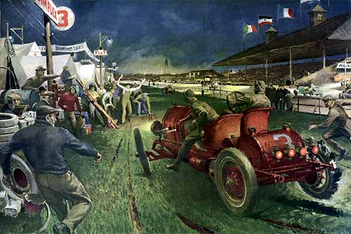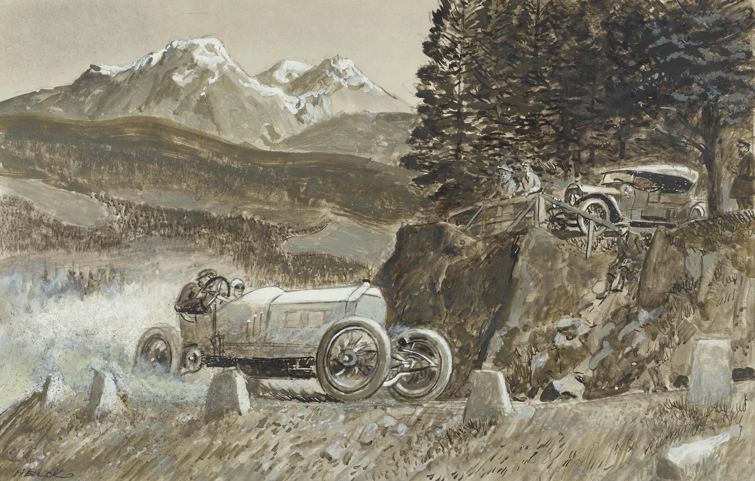 Peter Helck, born 17 June 1893, was an American illustrator who specialised in depicting racecars. Helck estimated that he had produced more than 600 sketches, drawings and paintings during his career.