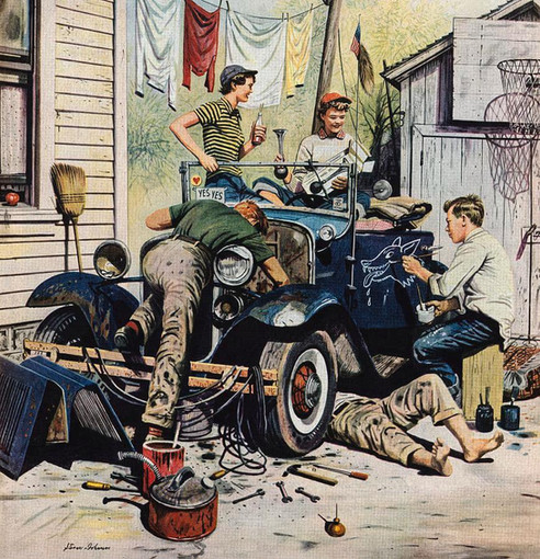 Stevan Dohanos died 4 July 1994, 87 years old. He was nationally known as an illustrator and magazine cover artist, particularly for his work appearing in The Saturday Evening Post. He is best remembered for his humorous illustrations capturing everyday American life in the 1940s and 1950s.