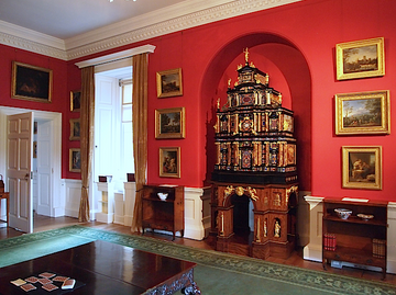 From the hall we were only able to look into the Saloon. The walls were covered in a dark red brocade, antiquities were placed on the sideboards, paintings from various periods hung on the walls and a chess set abandoned mid game waited in vain for its players to return.